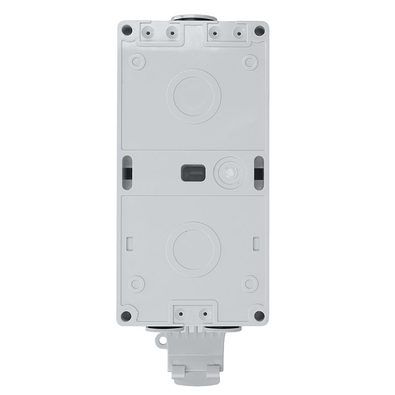 Integrovaný vypínač umožňuje snadné ovládání elektrického připojení, kdy kabel zůstává trvale zapojen a zásuvka se ovládá přímo vypínačem. Montáž zásuvky je snadná díky přiloženému příslušenství, včetně montážních šroubů, hmoždinek, držáků a vodotěsných zátek. Zadní box lze připevnit pomocí dvou metod, které umožňují přizpůsobení různým potřebám.