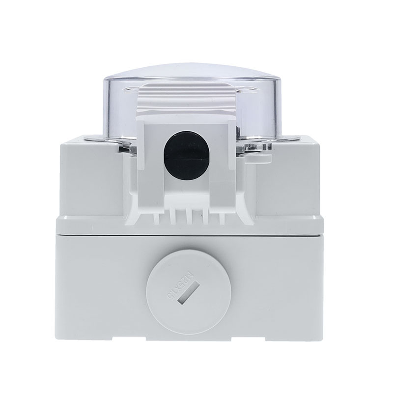 Průhledné víko zásuvky lze uzamknout visacím zámkem, což chrání proti nechtěné manipulaci a zvyšuje bezpečnost. Prodloužený kryt chrání část kabelu a zároveň slouží i jako páka ke snadnějšímu uzavření víka. Gumové těsnění a zátky zajišťují dokonalé utěsnění proti vodě a prachu. Konstrukce je navržena tak, aby odolala intenzivním klimatickým podmínkám, čímž zajišťuje dlouhodobou spolehlivost a bezpečnost při používání.