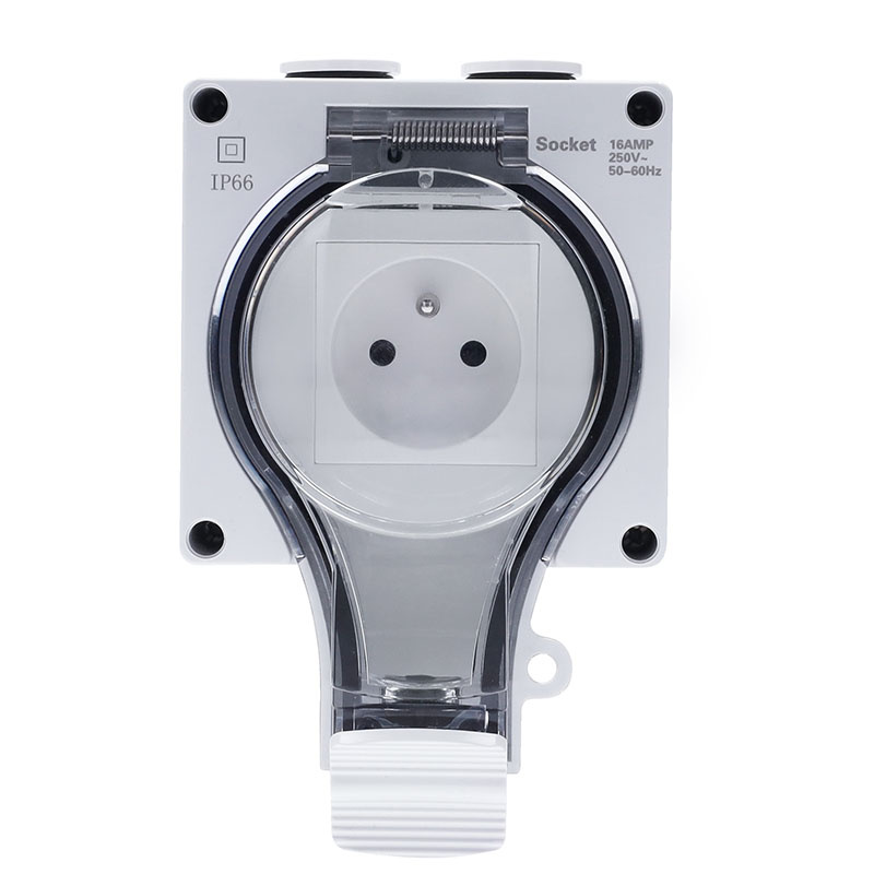 Venkovní zásuvka s průhledným víkem a krytím IP66 nabízí maximální bezpečnost v náročných podmínkách. Je plně chráněna proti prachu, tryskající vodě ze všech směrů a úrazům elektrickým šokem při kontaktu s nástroji či dráty většími než 1 mm. Díky tomuto vysokému stupni ochrany je ideální pro použití v průmyslovém i domácím prostředí, a to i ve vlhkých nebo prašných podmínkách.