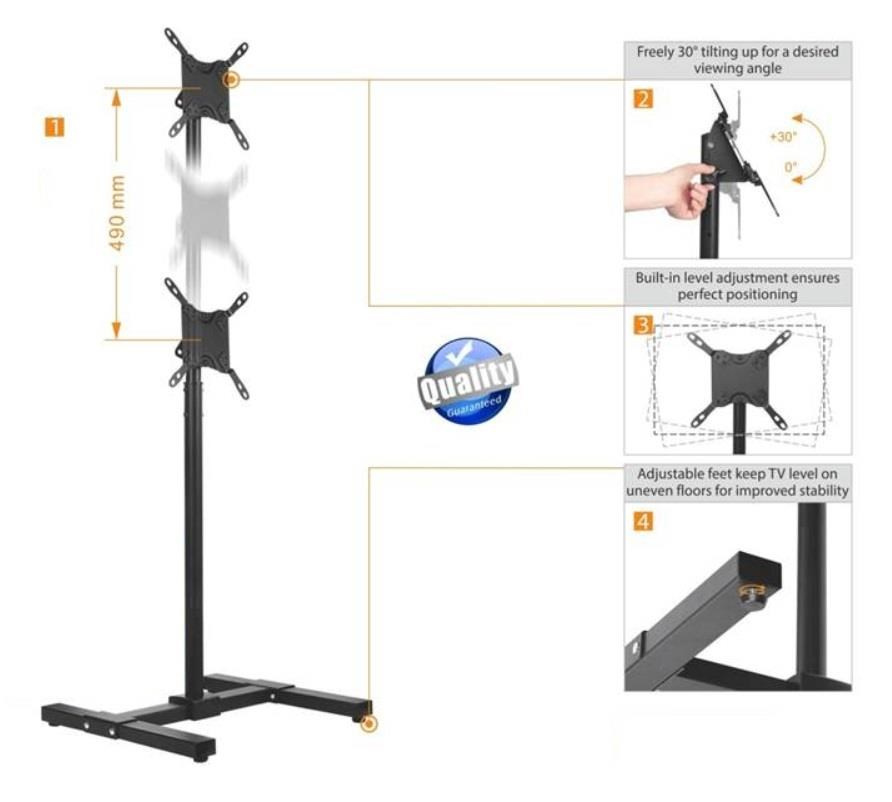 Stojan na televizi nebo monitor Fiber Mounts FM11 Kvalitní stojan na Tv nebo monitor 13-43", nastavení výšky 750-1240mm, naklonění obrazovky 0-30°, korekce roviny, VESA 75x75 až 200x200, nosnost 20kg Kvalitní a elegantní podlahový stojan na televizi, monitor nebo dotykové displeje s úhlopříčkou 13-43" (případně i větší), nastavitelná výška 750-1240mm a možnost nastavení sklonu 0-30°. Stojan podporuje VESA standardy 75x75 až 200x200 a je vhodný na obrazovky s hmotností až 20kg. Výborná stabilita, snadné nastavení do potřebné polohy, kovová konstrukce. Barevné provedení černé, záruka 10 let. Stojan na televizi monitor displej 13-43" Fiber Mounts FM11 Technické údaje: nosnost 20kg podporuje VESA standardy 75x75 až 200x200 ideální na televize, monitory a displeje s úhlopříčkou 13" až 43" nastavitelná výška 750mm až 1240mm nastavitelný náklon obrazovky 0° až +30° korekce roviny +/- 3° rozměry podstavce 502x454mm (šířka x hloubka) kvalitní kovová konstrukce výborná stabilita barevné provedení černé záruka 10 let.
