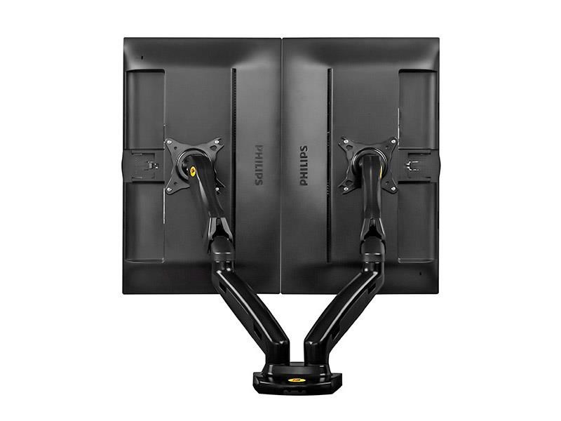Stolní držák na 2 monitory displeje NB F160 Stolní držák na zavěšení 2 monitorů 17-30", nezávislé nastavení každého monitoru, výškové polohování 140-400mm, otáčení do stran +/-180°, naklápění +85°/-30°, vzdálenost od úchytu 0-530mm, pivot +/-360°, VESA 75x75 a 100x100, nosnost 18kg Vynikající stolní držák na monitory a menší televizory v profesionální kvalitě, krásném designu, s mnoha nadstandartními možnostmi nastavení. Otáčení obrazovky do stran, náklon nahoru i dole ve vysokém úhlu, nastavení vzdálenosti od uchycení, korekce roviny obrazovky, horizontální nebo vertikální otočení obrazovky, systém skrytého vedení kabeláže. Výškové nastavení až 400mm, výšková regulace 260mm - velmi snadná manipulace. To vše v unikátním designu. Držák má velmi odolnou a bezpečnou konstrukci a je vhodný i do velmi vytížených provozů, kde je potřeba neustálé manipulace. Stolní držák na 2 monitory NB F160 NB F160 kvalitní dvoumonitorový držák na stůl, polohovatelný Držák je díky možnosti plné nastavitelnosti, profesionální konstrukci a pěkného designu vhodný pro velmi široké spektrum využití. Doporučujeme jak do domácností, tak kanceláří, pracoven, školních tříd, nemocnic, call center, IT pracovišť, provozů a firem. Stolní multimonitorový držák NB F160 - nezávislé zavěšení 2 monitorů na stolní držákKancelářský stolní držák na 2 pc monitory v TOP kvalitě a designu - NB F160 Technické údaje: nosnost 18kg podporuje VESA standarty 75x75 a 100x100 doporučujeme na monitory a televizory s úhlopříčkou 17" až 30" otáčení na obě strany +180° až -180° nastavení výšky monitorů 140-400mm náklon monitorů +85°/-30° vzdálenost od stolního uchycení 0-530mm horizontální i vertikální otočení obrazovky - funkce pivot +/-360° systém pro vedení kabeláže profesionální držák vysoké kvality 2 typy uchycení na stolovou desku - na okraj nebo skrz stolovou desku 10-90mm záruka 5 let Kancelářský držák na dva monitory NB F160 Kvalitní polohovací držák na monitory do kanceláře NB F160 Kancelářský stolní držák NB F160 podporuje VESA standarty: VESA 75x75 VESA 100x100.