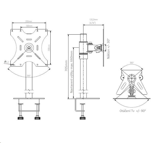 Technické údaje: nosnost 15kg podporuje VESA standardy 75x75 až 200x200 možnost zakoupení rozšíření VESA standardu až na 400x400 doporučujeme na Tv 30 až 46 palců na všechny typy a značky televizorů otáčení Tv do stran +/- 90° náklon +/- 30° nastavení výšky obrazovky, max. 660mm korekce roviny obrazovky možnost otočení obrazovky na výšku na výběr ze 2 typů uchycení na stolovou desku profesionální konstrukce výborná kvalita barevné provedení černé záruka 5 let Držák EDBAK MSV2 podporuje VESA standardy: VESA 75x75 VESA 100x100 VESA 200x100 a 100x200 VESA 200x200 možnost zakoupení nástavce VESA 400 - rozšíření na 300x200, 300x300, 400x200, 400x300 a 400x400.