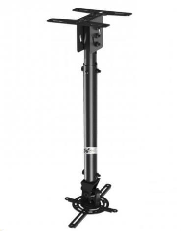 Stropní držák na projektory Fiber Mounts T718-2 černý Držák na projektory, univerzální, otočný, sklopný, délkové nastavení, barva černá Kvalitní stropní držák pro zavěšení všech typů projektorů s hmotností do 13,6kg. Plná nastavitelnost polohy projektoru - nastavení vzdálenosti od stropu 53÷83cm, otáčení do stran, náklon v obou osách, možnost uchycení i na šikmé stropy. Vynikající kvalita, pěkný design. Barevné provedení černé. Fiber Mounts NBT718-2 stropní držák na projektory v černém provedení, otočný, sklopný, délkově nastavitelný, i na šikmé stropy, TOP kvalita Technické údaje: max. zatížení 13,6kg na všechny typy projektorů s podporou zavěšení nastavitelná vzdálenost od stropu 530-830mm náklon +20° až -20° otáčení do stran +60° až -60° korekce roviny projektoru +20° až -20° možnost přetočení úchytu z vodorovné pozice do svislé podporuje 3-bodové i 4-bodové zavěšení projektoru profesionální kvalita snadná nastavitelnost montážní materiál součástí balení krásný design barva černá záruka 5 let.