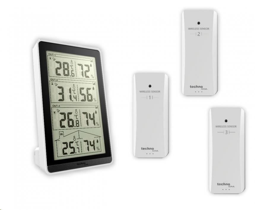 TechnoLine WS 7060 - digitální teploměr s vlhkoměrem se třemi bezdrátovými čidly