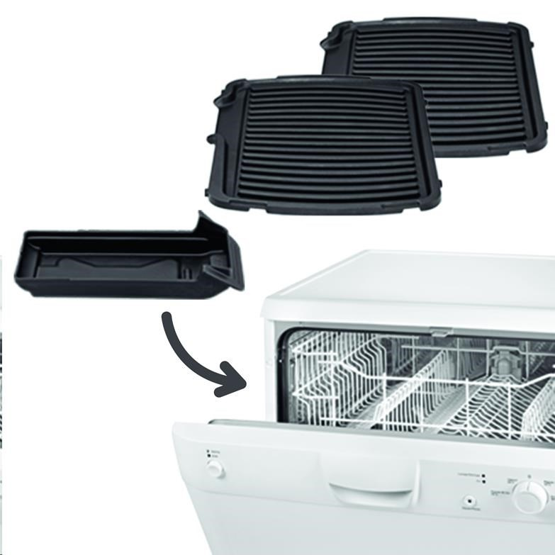 Úklid grilu je velmi jednoduchý díky oddělitelným grilovacím plochám, které je možné mýt v myčce, a také unikátnímu tácku na odtékající šťávu. Nastavte si přesnou teplotu pro konkrétní připravované potraviny a užijte si dokonalou chuť!