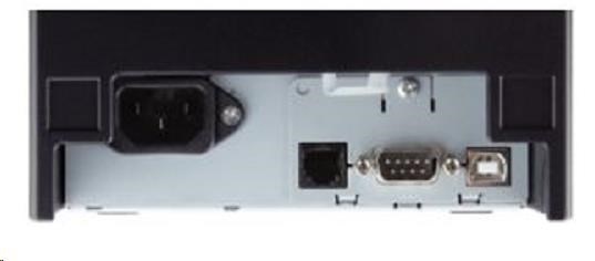Tiskárna v černém provedení má kompaktní design, je opatřena USB/sériovým portem, interním zdrojem a tichou a rychlou řezačkou papíru.