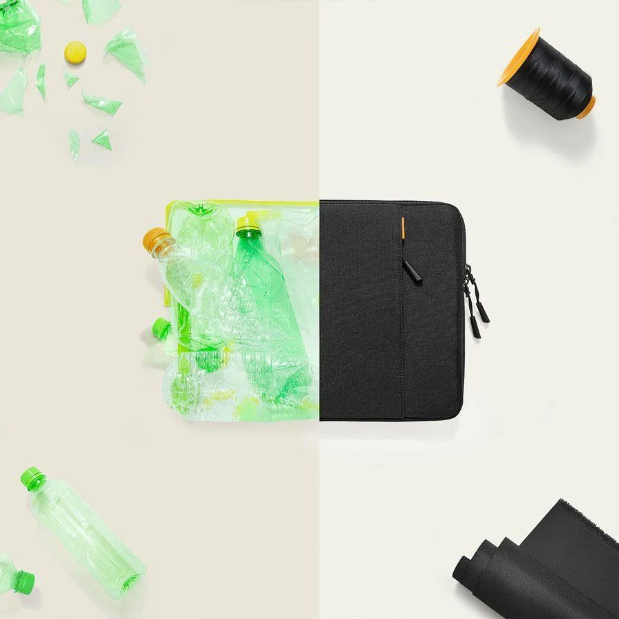 Podívejme se na další komponenty pouzdra, kterým tomtoc věnoval velkou pozornost. Jde totiž o vymazlené detaily, které ho odlišují od průměrných modelů a posouvají do první ligy. Jeho vnější část je vyrobena z prémiové recyklované tkaniny. Jde o materiál, na jehož vznik byly spotřebovány statisíce vyhozených plastových lahví a sáčků, nic jiného. Kromě toho, že je ekologický a maximálně udržitelný, je mimořádně odolný proti opotřebení, lehký a voděodolný. Vysokou životností vynikají také použité robustní YKK zipy.
