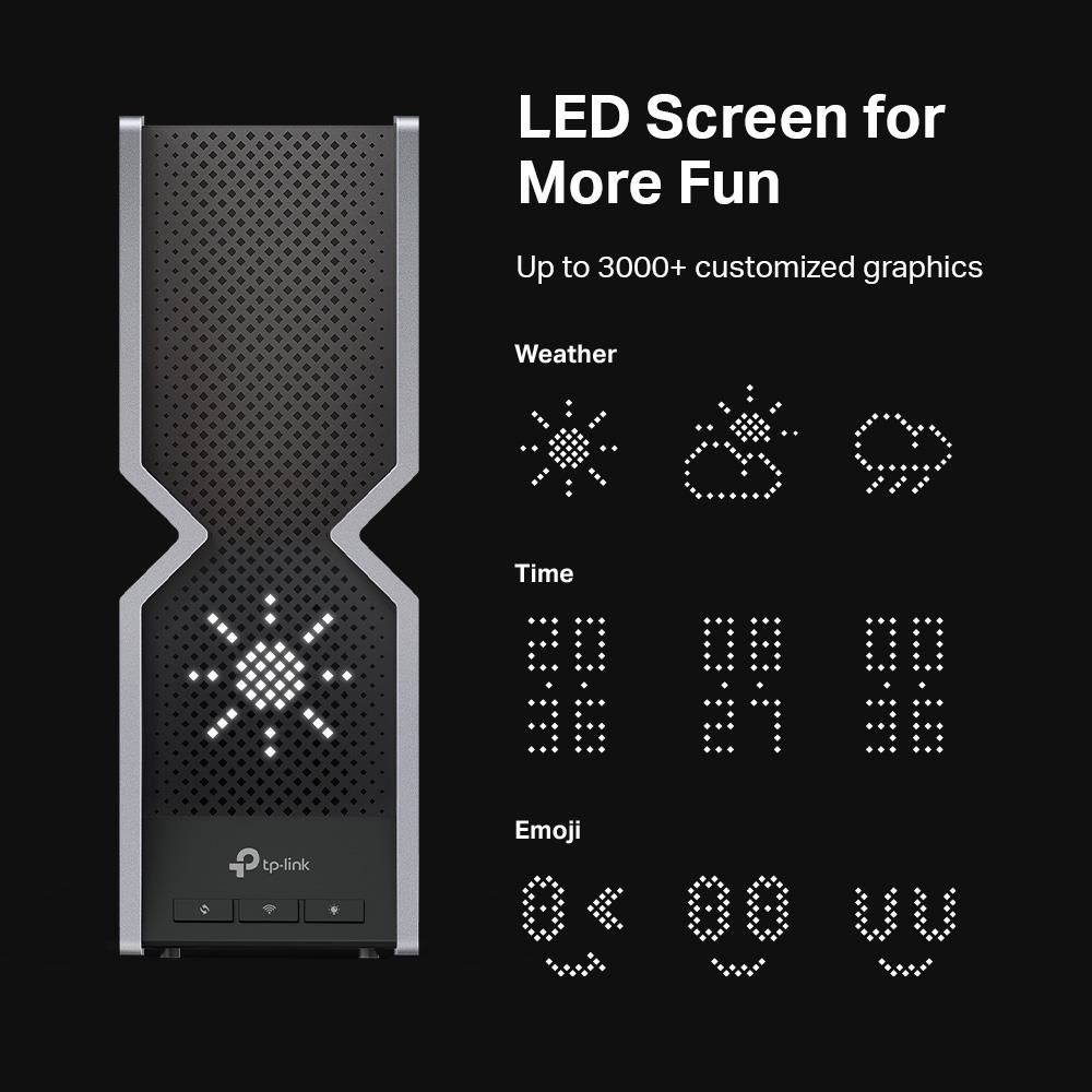 - Snadné a zábavné používání: Veškerá nastavení můžete pohodlně spravovat pomocí aplikace Tether a na LED displeji si prohlížet čas, počasí a další informace v líbivém grafickém stylu.