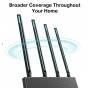 | WiFi Range | 3 Bedroom Houses 4× Fixed High-Performance Antennas Multiple antennas form a signal-boosting array to cover more directions and large areas Beamforming Concentrates wireless signal strength towards clients to expand WiFi range |