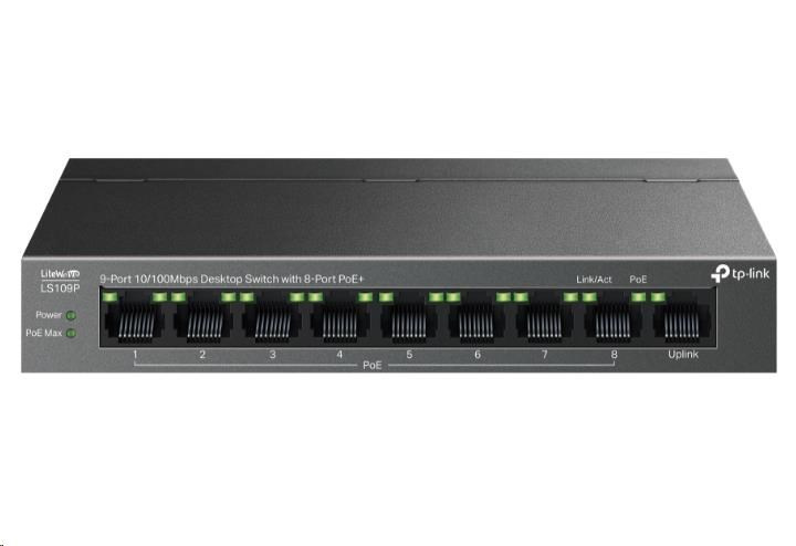 TP-Link LiteWave switch LS109P (9x100Mb/s, 8xPoE+, 63W, fanless)