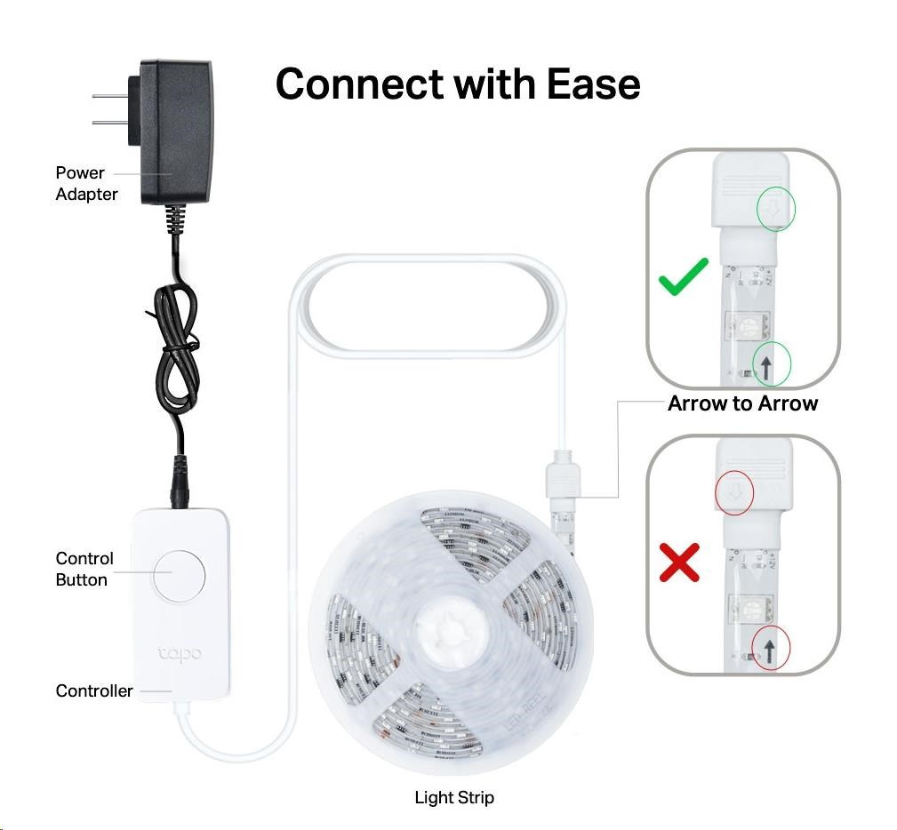 - Připojení podle vašich představ – můžete jej používat s chytrým asistentem, hubem nebo jej připojit přímo k aplikaci Tapo. Ovládejte světelný pásek způsobem, který vám vyhovuje.