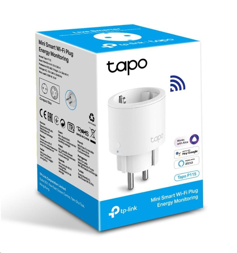 TP-Link Tapo P115(1-pack)(EU) chytrá WiFi mini zásuvka (3680W,16A,2,4 GHz,BT)