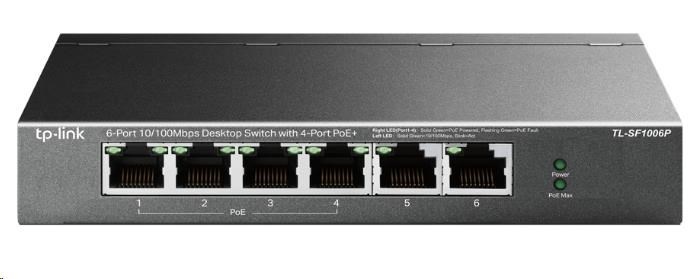 TP-Link switch TL-SF1006P (6x100Mb/s, 4xPoE+, 67W, fanless)