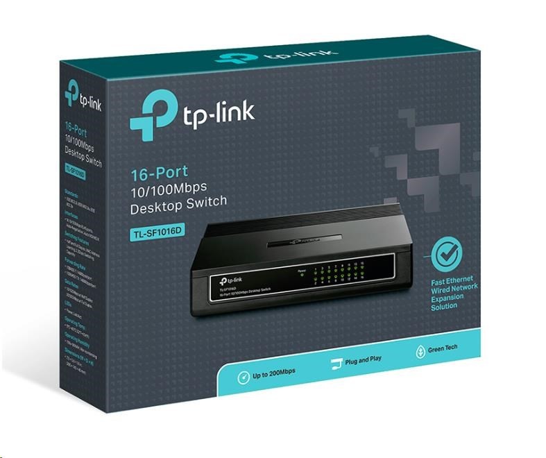 Switch TL-SF1016D Fast Ethernet je určen pro malé kanceláře nebo pracovní skupiny. Všech 16 portů podporuje funkci Auto MDI/MDIX, díky které se nemusíte starat o příslušný typ kabelu – stačí zapojit a používat. Navíc s inovativní technologií úspory energie dokáže zařízení TL-SF1016D snížit spotřebu energie až o 70 %*; 80 % obalového materiálu lze recyklovat. To vše z tohoto zařízení činí ekologické řešení pro vaši firemní síť.
