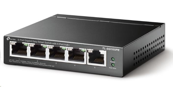 TP-Link Easy Smart switch TL-SG105PE (5xGbE, 4xPoE+, 65W, fanless)