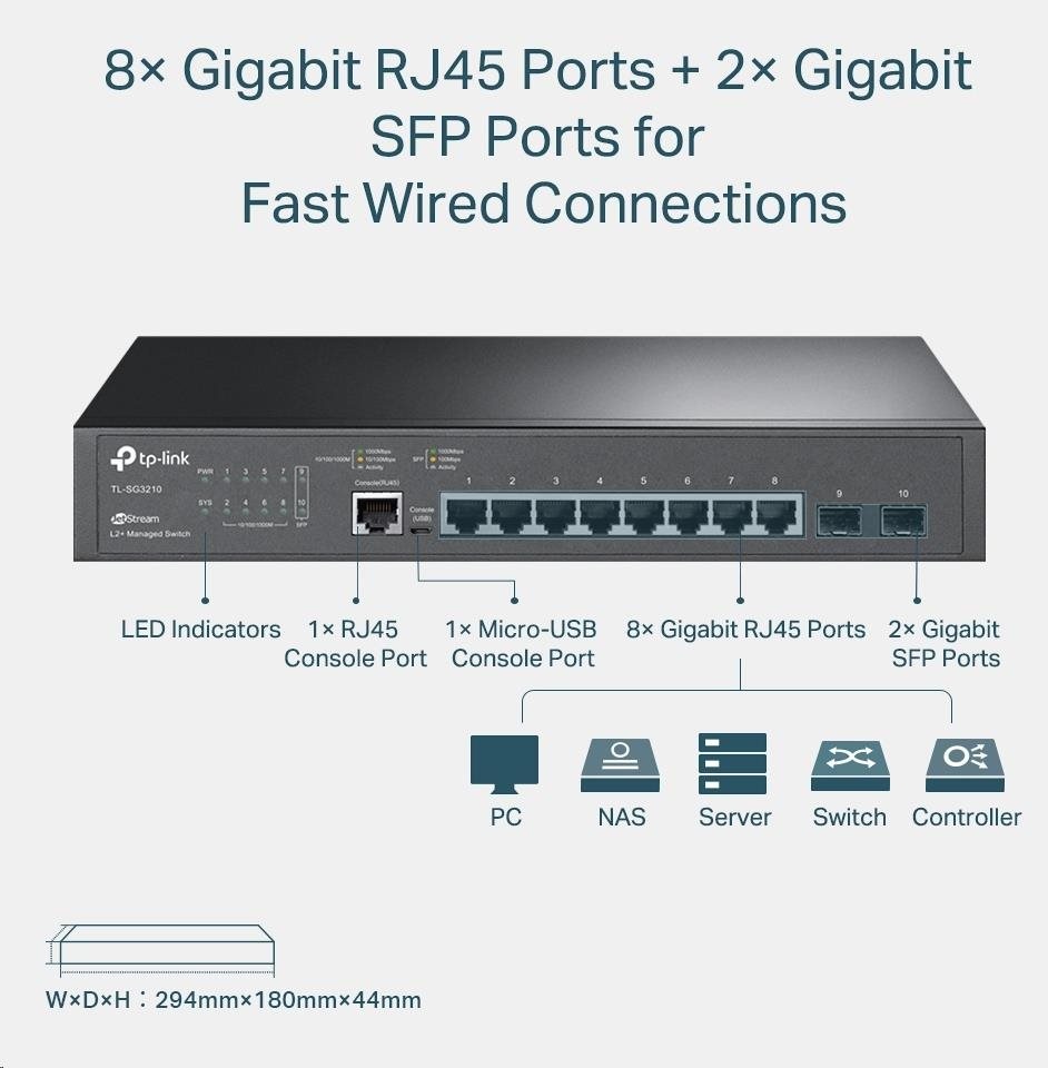 TP-Link OMADA switch SG3210 (8xGbE, 2xSFP, 2xConsole, fanless)