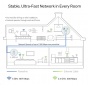 - Dvoupásmová síť Wi-Fi AC1200 – zařízení rozšíří ultra rychlou dvoupásmovou Wi-Fi síť s rychlostí až 867 Mbit/s v pásmu 5 GHz a až 300 Mbit/s v pásmu 2,4 GHz.