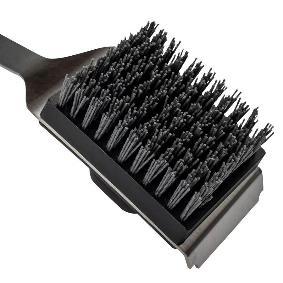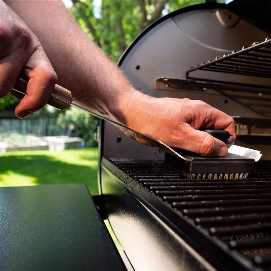 Představujeme bezpečnější způsob čištění vychladlých roštů grilu. Naše čisticí kartáče Traeger BBQ mají nylonové štětiny, které nepoškodí rošty ani se nedostanou do hamburgerů.