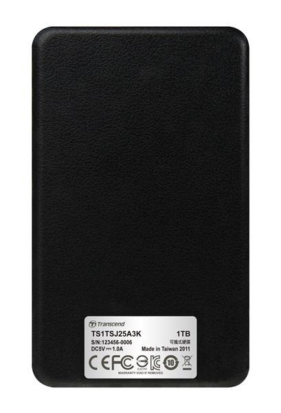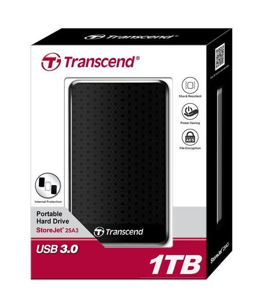 TRANSCEND externí HDD USB 3.1 StoreJet 25A3, 1TB, Black (nárazuvzdorný, 256-bit AES)