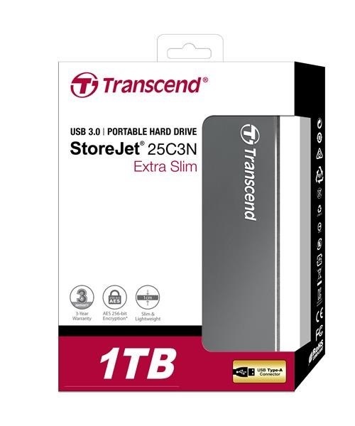 TRANSCEND externí HDD USB 3.0 StoreJet 25C3N, 1TB, Ultra Slim
