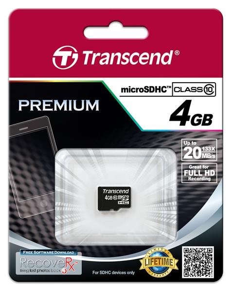 TRANSCEND MicroSDHC karta 4GB Class 10, bez adaptéru