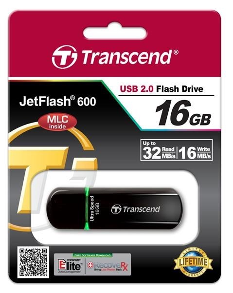 TRANSCEND Flash Disk 16GB JetFlash®600, USB 2.0 (R:32/W:16 MB/s) černá/zelená