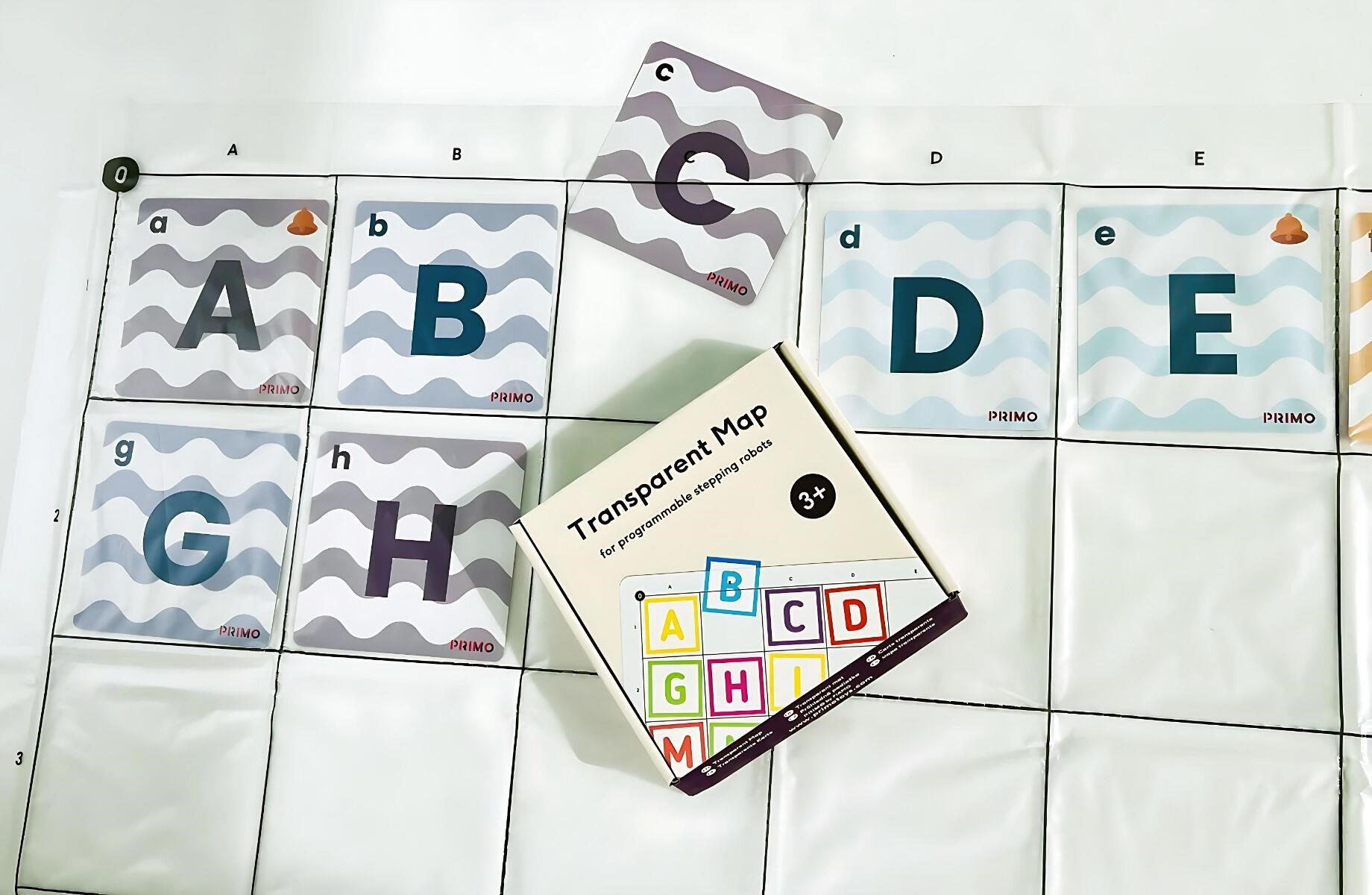 Transparentní podložka pro krokové roboty (Cubetto, Bee-Bot & Blue-Bot a další) s kapsami, do kterých lze vkládat kartičky s různými tématy. Učitelé nebo děti si tak mohou vymýšlet vlastní příběhy a úkoly, které budou odpovídat jejich potřebám a znalostem.