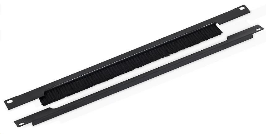 TRITON 19" průchozí panel 1U rozdělený horizontálně, kartáč, otvor 350 x 21 mm, černý