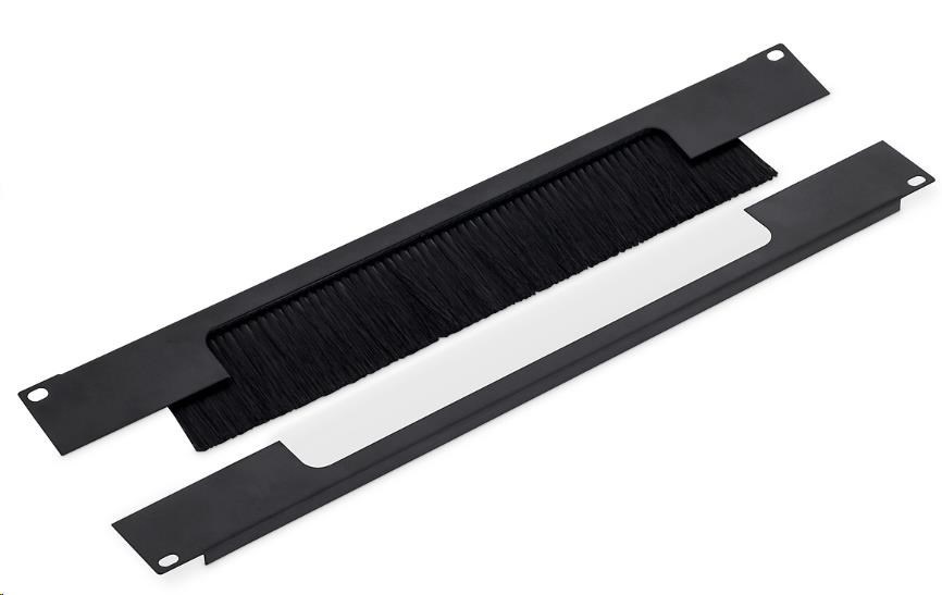 TRITON 19" průchozí panel 2U rozdělený horizontálně, kartáč, otvor 330 x 55 mm, černý