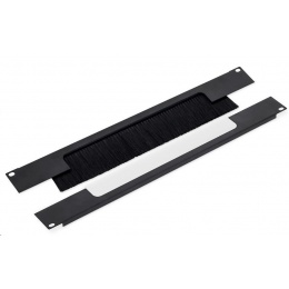 19" průchozí panel 2U rozdělený horizontálně, kartáč, otvor 330 x 55 mm.