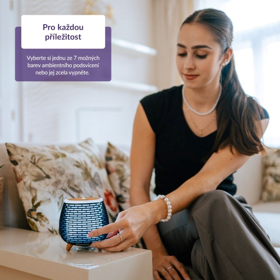 Stačí chvilka a difuzér TrueLife promění vzduch v místnosti, zvlhčí jej a případně naplní příjemnou vůní esenciálního oleje pomocí technologie OilFlow®. Zároveň však umí vytvořit jedinečnou atmosféru díky podsvícení, kde si máte možnost zvolit až ze 7 barevných variant.