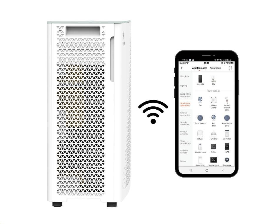 Čističku lze připojit na WiFi síť a ovládat prostřednictvím mobilní aplikace.