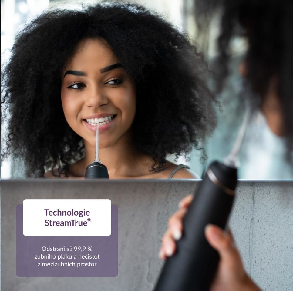 Naprostá většina zubních kazů vzniká v mezizubních prostorech. Jejich pravidelné čištění je proto nutností. Bývá ale zdlouhavé a často ne úplně příjemné. S ústní sprchou TrueLife AquaFloss Compact C300 je čištění mezizubních prostor o mnoho snazší a šetrnější. Díky technologii StreamTrue® proud kapek vody a vzduchu, který vychází z trysky ústní sprchy, dokonale pronikne i do nejmenších prostor, kde účinně odstraňuje až 99 % zubního plaku i bakterií. Díky kompaktnímu designu a výdrži baterie můžete se sprchou bez obav cestovat. Její používání je snadné a vyžaduje minimum nácviku. Sprcha nabízí 5 režimů čištění s různými intenzitami tlaku, včetně režimu Pulse s technologií PulseTrue®, díky které přístroj masíruje dásně, prokrvuje je a napomáhá tak jejich regeneraci. Díky funkci DIY si můžete vytvořit vlastní režim čištění, ve kterém si zvolíte intenzitu tlaku vody, která vám bude nejvíce vyhovovat. Přístroj má 6 speciálních trysek, které jsou navrženy pro vaše konkrétní potřeby.