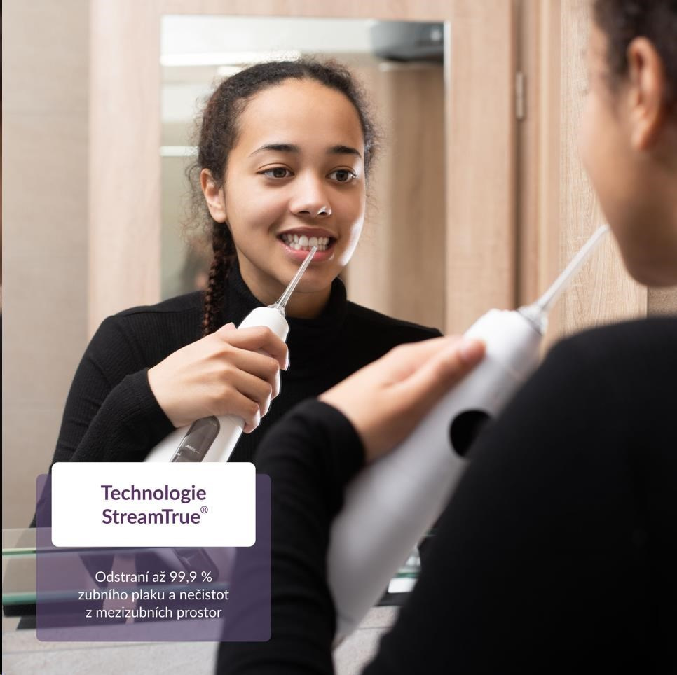 Naprostá většina zubních kazů vzniká v mezizubních prostorech. Jejich pravidelné čištění je proto nutností. Bývá ale zdlouhavé a často ne úplně příjemné. S ústní sprchou TrueLife AquaFloss Compact C300 je čištění mezizubních prostor o mnoho snazší a šetrnější. Díky technologii StreamTrue® proud kapek vody a vzduchu, který vychází z trysky ústní sprchy, dokonale pronikne i do nejmenších prostor, kde účinně odstraňuje až 99 % zubního plaku i bakterií. Díky kompaktnímu designu a výdrži baterie můžete se sprchou bez obav cestovat. Její používání je snadné a vyžaduje minimum nácviku. Sprcha nabízí 5 režimů čištění s různými intenzitami tlaku, včetně režimu Pulse s technologií PulseTrue®, díky které přístroj masíruje dásně, prokrvuje je a napomáhá tak jejich regeneraci. Díky funkci DIY si můžete vytvořit vlastní režim čištění, ve kterém si zvolíte intenzitu tlaku vody, která vám bude nejvíce vyhovovat. Přístroj má 6 speciálních trysek, které jsou navrženy pro vaše konkrétní potřeby.