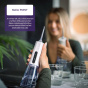 Ústní sprchu není potřeba mít připojenu do sítě, pouze ji dobíjíte přes USB. Její baterie vydrží při použití 2x denně po 2 minutách až 14 dní provozu. Kompaktní design umožňuje, že si ji bez problémů zabalíte i na cesty. Přehledný displej zobrazuje zvolený režim a stav baterie.