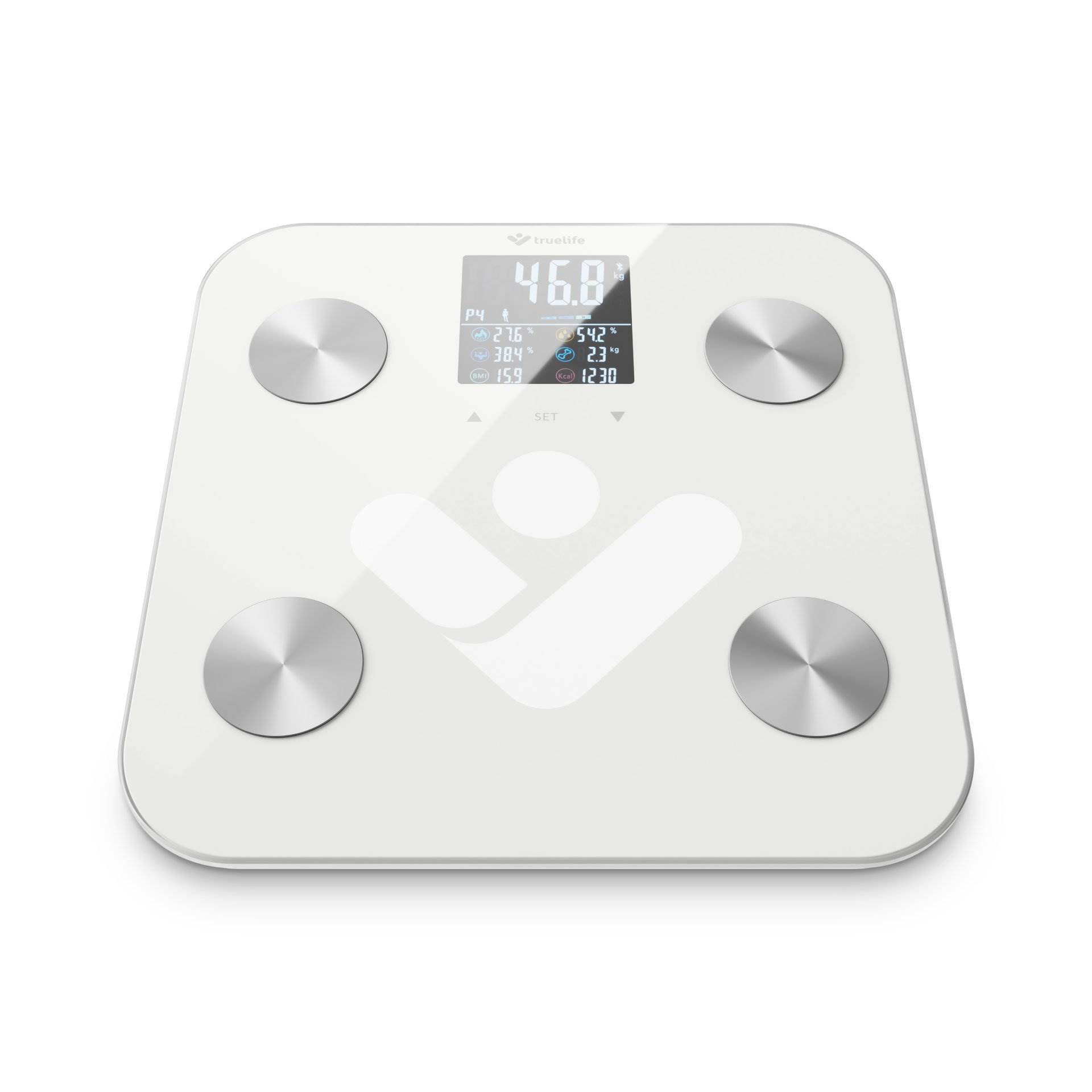 Představte si osobní váhu tak chytrou, že vám umožní dokonale poznat vlastní tělo. TrueLife FitScale W6 BT tohle umí. Velice přesně ukáže vaši aktuální hmotnost a přidá spoustu dalších užitečných informací díky bioelektrické impedanční analýze. Vše přehledně vidíte na barevném LCD displeji se 7 indexy těla. Váha je natolik inteligentní, že automaticky rozezná uživatele. Prémiové krycí sklo unese hmotnost až 180 kg. Váha postačí pro rychlou diagnostiku těla, ale pokud vás zajímá popis všech měřených indexů, skvělá je také mobilní aplikace. Stačí propojit váhu přes Bluetooth s telefonem a v aplikaci hned vidíte kompletní tělesný reporting i statistiky.