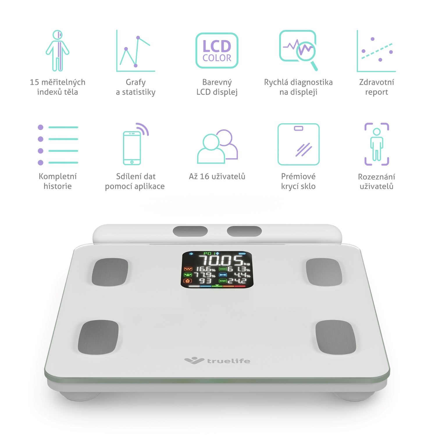 TrueLife FitScale W8 BT White - osobní diagnostická bluetooth váha