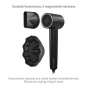 V balení fénu naleznete 2 magnetické nástavce. Každý z nich díky magnetu snadno nasadíte a vlasový styling může začít. Koncentračním nástavcem cíleně vyfoukáte konkrétní místo, difuzér účes načechrá, drží totiž vlasy oddělené a vyzdvižené u kořínků. Fén pracuje tiše, ochrana proti přehřátí zaručuje bezpečné používání a jistotu snadné údržby představuje magnetický prachový filtr. Doma i na cestách se hodí také kabel o délce 1,9 m pro pohodlné užití zařízení.