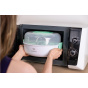 Celý proces sterilizace trvá přibližně 2 minuty, přesný čas závisí na výkonu vaší mikrovlnné trouby. Po zavření víka sterilizátoru zůstávají předměty uvnitř sterilní po dobu 24 hodin. Vždy tak máte k dispozici čistý dudlík nebo lahvičku, třeba když zrovna nestíháte, nebo cestujete.