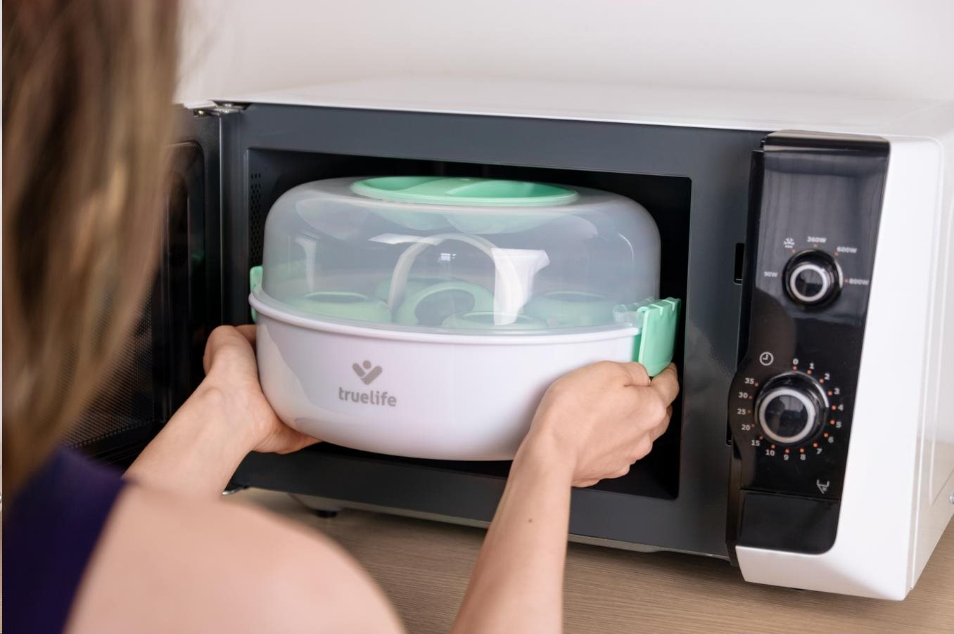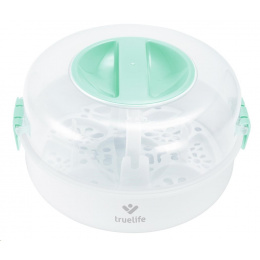 Ochrana imunitního systému vašeho dítěte pro vás nemusí znamenat neustálé vyvařování lahviček a dudlíků. Se sterilizátorem do mikrovlnné trouby TrueLife Invio MS5 sterilizujete dětské lahvičky, kousátka a další předměty během dvou minut. K tomu potřebujete jen obyčejnou vodu a mikrovlnou troubu. Sterilizátor využívá nemocniční metodu parní sterilizace, která je rychlá, účinná a bez chemických látek. Ničí tak 99,9 % bakterií a mikrobů, které se na dětských předmětech nacházejí, aniž by poškodil jejich povrch. Sterilizátor je navržen pro většinu mikrovlnných trub na trhu a zvládne většinu typů kojeneckých lahví. Pojme až 5 lahviček naráz a snadno se ovládá. Díky kompaktním rozměrům s ním můžete bez problému cestovat.