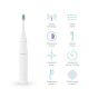 Kartáček pracuje na bázi kmitání a vibrací o frekvenci 70 000 pohybů za minutu a odstraňuje maximum zubního plaku.