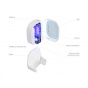 Sterilizátor si díky jeho kompaktním rozměrům můžete vzít kamkoliv s sebou, vejde se totiž i do kabelky. Napájí se pomocí přiloženého USB kabelu, takže ho můžete nabíjet i z powerbanky, třeba když stanujete. Součástí balení je praktický držák na zeď pro domácí použití.