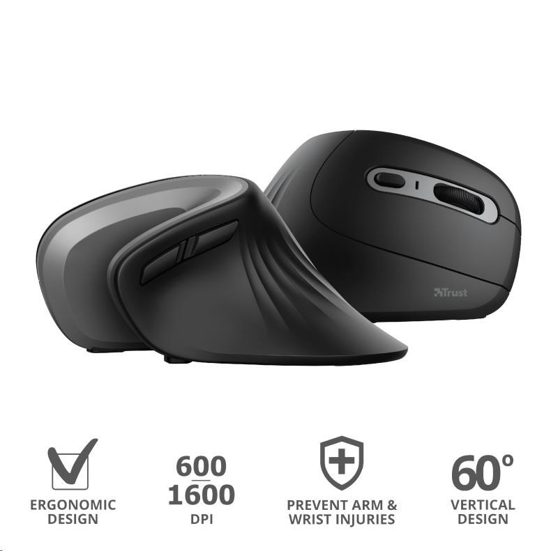 TRUST ergonomická vertikální myš Verro Wireless Ergonomic Mouse, black