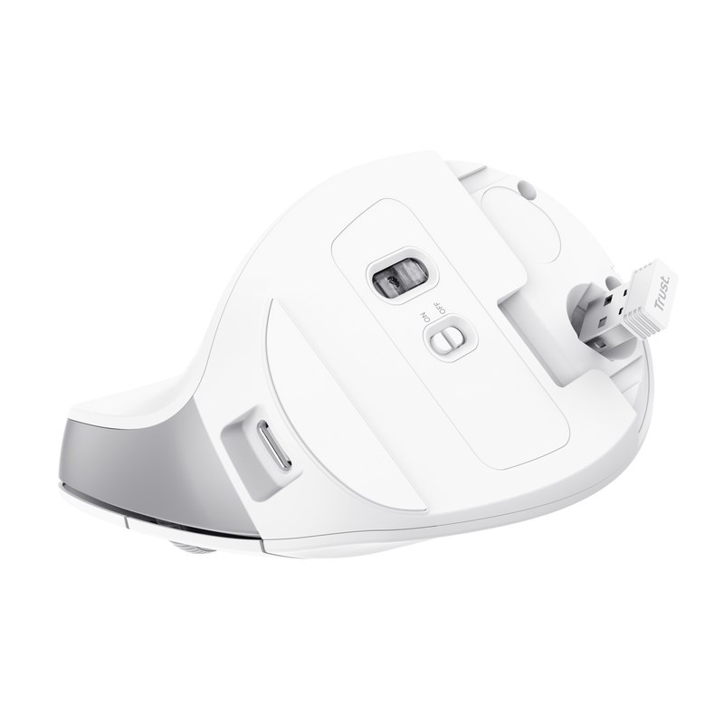 TRUST myš Bayo II Ergonomická vertikální myš, Bezdrátová, bílá