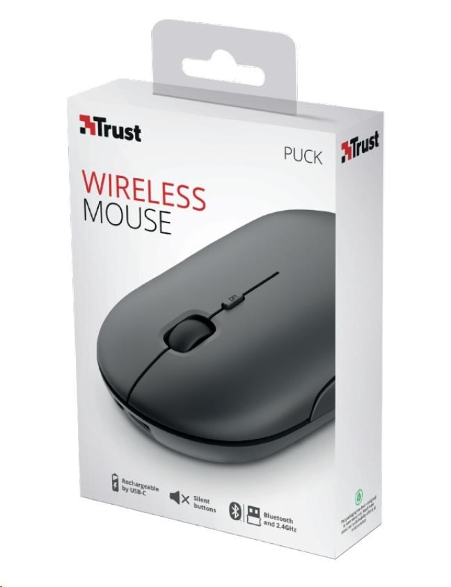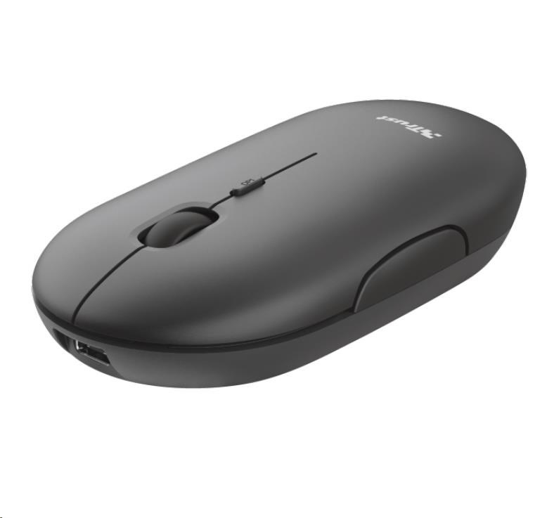 Rechargeable wireless mouse with minimalistic, rounded shape and silent buttons