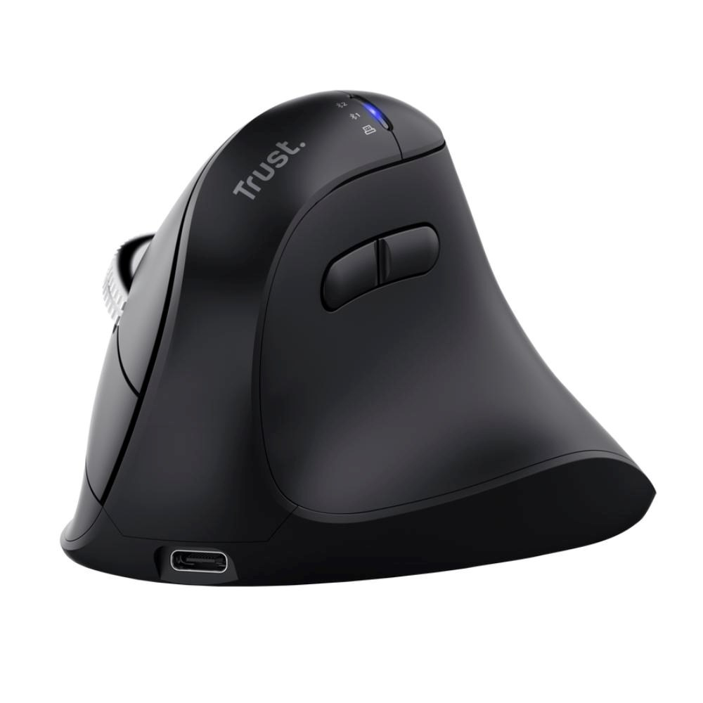 Trust Vyran je ergonomická bezdrátová myš s vertikálním designem (50°), která pomáhá udržet ruku v přirozené poloze a zvyšuje pohodlí při dlouhé práci. Nabízí hyperscroll kolečko pro rychlé rolování a možnost připojení až ke třem zařízením – přes Bluetooth nebo 2,4 GHz bezdrátový přijímač USB-A s přiloženým USB-C adaptérem. Díky dobíjecí baterii s dlouhou výdrží a jednoduchému přepínání zařízení je ideální volbou pro každodenní kancelářskou práci i home office.