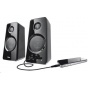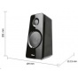 - Stylové reproduktory s bohatým zvukem a vysokým maximálním výkonem 36 W (18 W RMS) - Snadno dostupné ovládání hlasitosti a basů, zdířka na sluchátka na přední straně - Vstupní konektor pro iPod, iPhone, přehrávač MP3 apod. - Inteligentní správa napájení: automaticky přejde do pohotovostního stavu po určité době nečinnosti Obsah balení - 2 reproduktory s připojenými kabely - Návod k použití Systémové požadavky - 3.5 mm audio connection - Wall power connection .