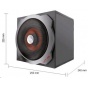 - Charakteristický dřevěný subwoofer s kovovou mřížkou