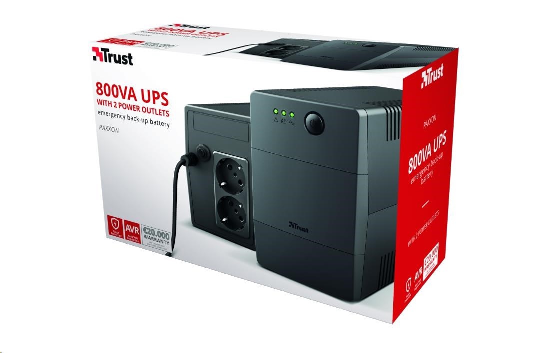 TRUST UPS Paxxon 800VA UPS with 2 standard wall power outlets