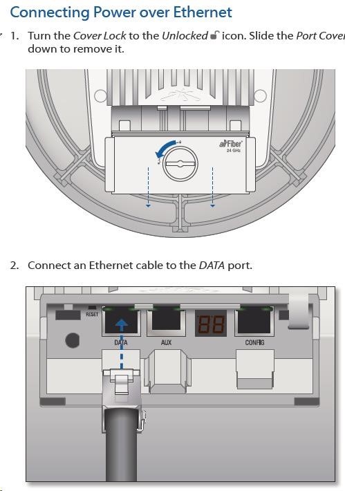 Ubiquiti airFiber AF24 je určený pro páteřní spoje, pracuje v nelicencované pásmo 24 GHz s reálnou propustností až 1,4 Gbps! Jednotka je vybavena dvěma parabolickými anténami z nichž jedna slouží pro příjem a druhá pro vysílání dat, technologie MIMO. Na výběr je několik režimů činnosti: FDD (Frequency Division Duplex) a HDD (Hybrid Division Duplex), díky kterým airFiber dosahuje vysoké rychlosti a spektrální účinnost. HDD systém nabízí nízké latence FDD systémů a spektrální účinnost TDD systémů. Podporován je Full Duplex i Half Duplex režim, transparentní L2 bridge a AES-128 bitové kryptování.